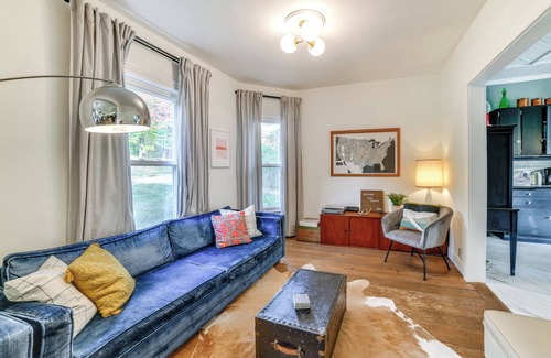 Nestled in the natural beauty of the Catskills, this 4-bed, 2.5-bath Hobart vacation rental home blends modern comforts with a picturesque setting. Enjoy exciting slopes at Plattekill Mountain, explore nearby trails, or discover charming vintage shops, bookstores, the local wine shop, and cozy cafes. As night falls, fire up the gas grill for a homemade meal and gather near the fire pit to roast s'mores with your crew.