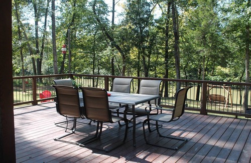 The large back deck overlooks the Mountain Fork River. There is a fire pit to roast your marshmallows, a grill for those who wish to cook outdoors and a swing by the river to relax and enjoy the wildlife.