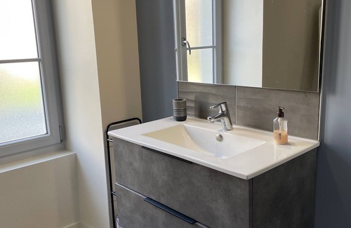 In the heart of the Loir Valley, 5 mins from the Bercé forest, 5 mins from the A28, the owner welcomes you to her house in the heart of a village, on the banks of the Loir. Upstairs: a guest bedroom for 2 people (1 bed 140), small independent living room with sofa bed for 2 people. Bathroom with large corner bath, 1 sink, 1 WC.