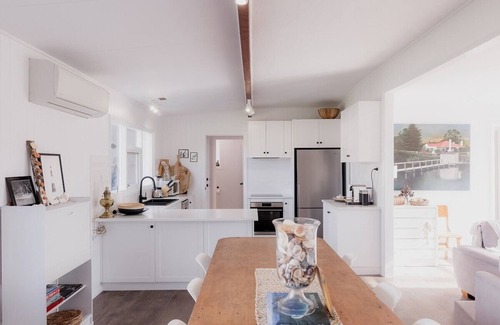 Fully equipped kitchen with modern appliances and a large 8-seat dining table for relaxed home-cooked dinners. Split system heating and cooling as well as a wood fire in the lounge to utilise for summer comfort or winter warmth.