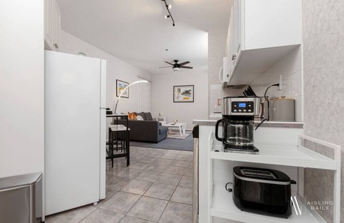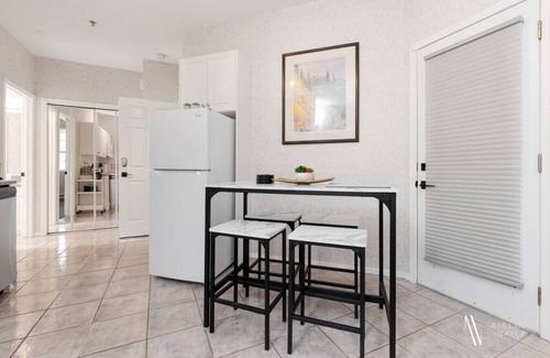 This unit features a washer/dryer beside the front door with laundry pods and dryer sheets for your use. Please note that it is shared with the neighbouring unit.