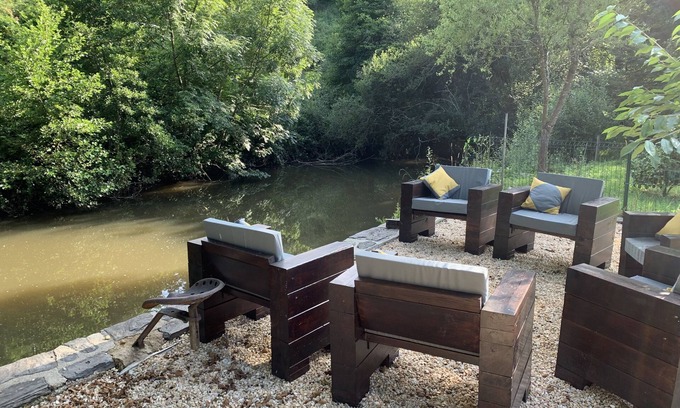 Unwind at this stylish riverside villa situated in the heart of a medieval village, classified as one of the most beautiful villages in France. The property offers wooden floors, high ceilings, vintage features and fine art for a luxurious yet charming feel. Enjoy the river views from the balcony and lush garden or descend down to the river edge where you'll find a comfortable seating area, perfect for chilling and fishing. The property also features a 4 person hot tub, games room and canoe.