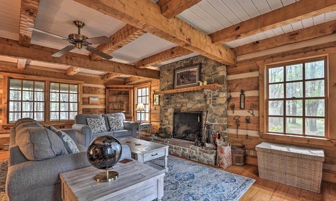 Located on 12 private acres, this 3-bed, 2.5-bath vacation rental invites you to enjoy a peaceful escape in North River Mills. This cabin boasts a full kitchen, outdoor space for riverside dining or cozy nights by the fire, and access to private land owned by a nature conservancy. When you’re ready to explore, embark on a hike at Raven Rocks or visit Berkeley Springs State Park for a refreshing soak in the natural pools!