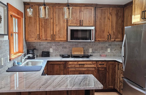 This 675 sq ft studio guest house was rebuilt in 2025 next to my home on the McKenzie River in Vida. Come enjoy the natural beauty of its riverside setting, a complete kitchen, bathroom with a tub/shower combination and a washer/dryer. The kitchen is stocked with pots, pans, plates, glasses, silverware, coffee maker, griddle, hot plate, and other small appliances for cooking. There is a king sized bed with powered ergonomic base in the sleeping area, a chaise lounge sofa, cots and a queen size electric air mattress in the living area. Wifi provided so you can stay connected as necessary and work remotely.