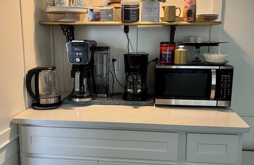 Full kitchen fully stocked dishes,pots/pans cooking essentials, dishes, flatware, glassware.