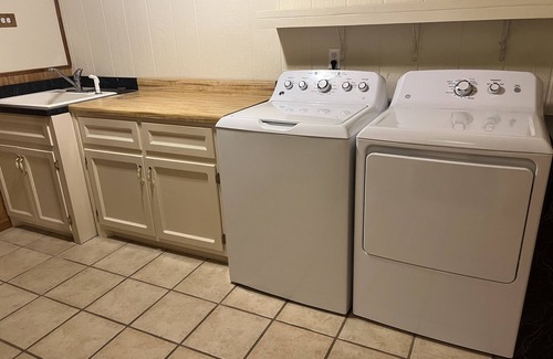 Welcome to your private retreat showcasing gorgeous views of the Ouachita River. Nestled on over 4 acres with mature trees and areas for kids to run and play, this beautiful home features an expansive wrap-around deck that gives the bedrooms balcony access and makes watching sunsets pure bliss. Upon entering the home, enjoy hardwood flooring in the living area with leather reclining couches, a TV with Roku, and board games, a dedicated dining room, and eat-in kitchen with plenty of cookware including pots, pans, silverware, cups, and glasses. The numerous kitchen windows overlook the river and an office is ready to host you with a comfortable futon and desk should you need to join a meeting using our complimentary WiFi. The main bedroom has a king-sized bed, full en suite bath with dual vanities, a massive closet, and bathtub shower combination. The main level also holds two additional bedrooms with queen beds, a full hall bathroom, and another half bath. Downstairs hosts two more twin beds plus a game room with a pool table and a second TV with Roku. This space also holds the full sized washer and dryer. While this home overlooks the river itself, Lake Ouachita is about 15 miles away with opportunities to rent a boat or swim. Hot Springs is an easy day trip about 45 miles east of the property. Popular Camp Ozark is minutes from the house. Get away from it all at this quiet retreat on the water with star-gazing from the comfortable deck, stunning river views, and nearby water activities.