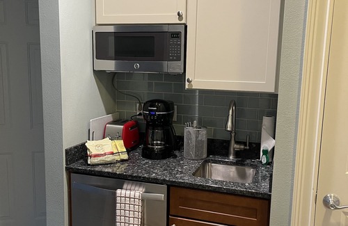 Private studio unit, sleeps 4, queen bed, queen sleep sofa, kitchenette and bathroom.