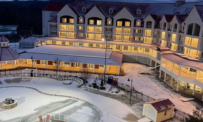 Luxury resort at Loon Mountain with balcony of beautiful views of Loon Mountain South Peak.