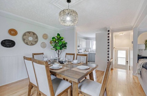 Welcome to our mini-resort in the city! This waterfront unit is the bottom half of a duplex, complete with a hot tub overlooking the Ottawa River, three spacious rooms, a fully equipped kitchen, and a basement equipped with everything your family needs.