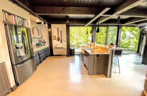 High-end appliances include a 48-inch range, fireplace grill, two dishwashers, custom cabinetry, and a ton of open space. Offers an high-end espresso machine, a Breville AND a Keurig coffee maker as well as a Kitchen-Aid mixer and Instapot. Fully stocked for cooking. A cozy breakfast bar that seats 4 and a large artisan made dining table overlooking the mountains.