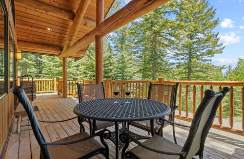 This private guest cabin is nestled in the trees at the base of Teton Pass in Wilson Wyoming and 9 miles from the town of Jackson. This secluded cabin includes a large great room boasting a kitchen, living room, and wood stove. An amazing private upper deck surrounds the front and side of the home accessed and is the main entrance to the cabin. Enjoy grilling and relaxing on the provided deck.