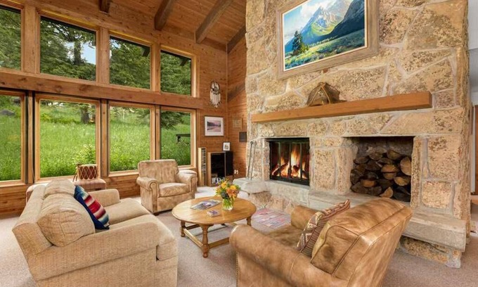 - Versatile Gathering Spaces: Take advantage of the charming living room featuring a stone fireplace and convenient portable Sonos speakers, creating an inviting atmosphere for bonding and story-sharing among loved ones.