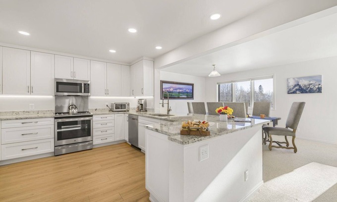 - Ideal Location: Nestled in a charming wooded neighborhood, you'll benefit from nearby dining options, markets, and access to Grand Teton National Park, enhancing your wedding experience in beautiful Jackson Hole.
