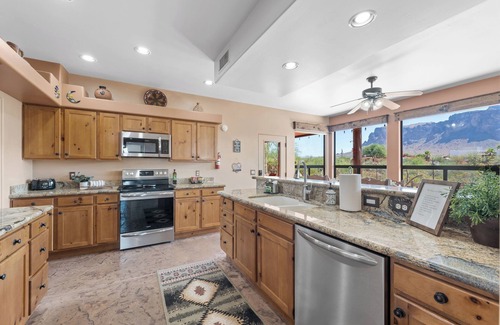 Roadrunner Retreat: Superstition Views & Wildlife is located in Apache Junction. Roadrunner Retreat: Superstition Views & Wildlife provides accommodation, featuring Barbecue/Outdoor Cooking, TV, Balcony/Terrace, among other amenities. This House features Barbecue/Outdoor Cooking, TV, Balcony/Terrace, to make your stay a comfortable one.