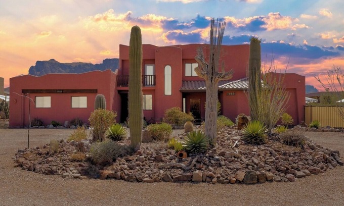 Best-rates for the Apache Junction house starts from $320 per night with includes TV, Balcony/Terrace, Bedding/Linens, Entertainment, Child Friendly, Pool, Sports/Activities, Guest Services, Kitchen, Laundry, Air Conditioner, Parking, Private Pool, Wellness Facilities, Internet, Security/Safety, Fireplace/Heating, Barbecue/Outdoor Cooking with all other amenities. Perfect for Weddings is committed to ensuring every guest experiences a comfortable and extraordinary stay, whether planning a romantic getaway, a honeymoon, a pet-friendly stay, or celebrating with the entire wedding party.
