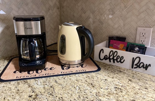 This cottage features three bedrooms plus a large loft that doubles up as the fourth bedroom. Comes with a fully stocked kitchen and game room for all your needs, as well as a charcoal grill that doubles up as a fire pit. Garage has a pool table and corn hole game, as well as a mini golf for a rainy day. Basketball and volleyball, as well as tennis rackets are also provided and can be used in the public park located 5 miles away.