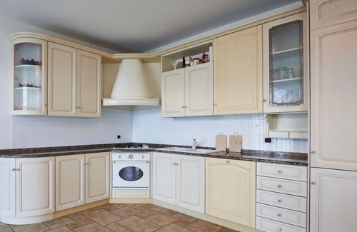 3-room apartment 85 m2, on the ground floor. Large living/dining room with open-hearth fireplace, dining table and satellite TV. 1 double bedroom. 1 room with 2 beds and 1 x 2 bunk beds. Open kitchen (4 hot plates, oven, dishwasher, toaster, freezer, electric coffee machine). Exit to the terrace. Shower/WC. Gas heating. Terrace partly roofed, lawn. Terrace furniture, deck chairs (4). Panoramic view of the lake and the mountains. Facilities: children's high chair, baby cot for up to 2 year olds. Internet (WiFi, free). Parking (2 cars). Please note: non-smokers only. Private entrance. IT013249C2675WBI4C