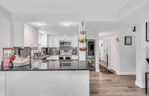 Pet lovers will appreciate that this home allows up to two dogs making everyone happy! The fully stocked kitchen is ideal for preparing delicious meals and snacks with a full bathroom downstairs for your convenience. The two bedrooms upstairs include a king and queen bed respectively and share a full bathroom in between.