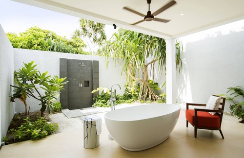 ROBINSON NOONU - All inclusive offers 150 air-conditioned accommodations with iPod docking stations and minibars. Rooms open to balconies or patios. Beds feature premium bedding. 32-inch flat-screen televisions come with satellite channels. Bathrooms include separate bathtubs and showers, bathrobes, slippers, and designer toiletries.