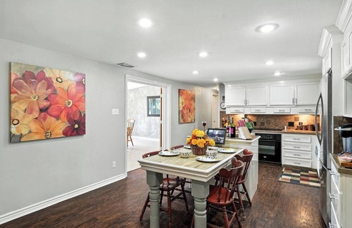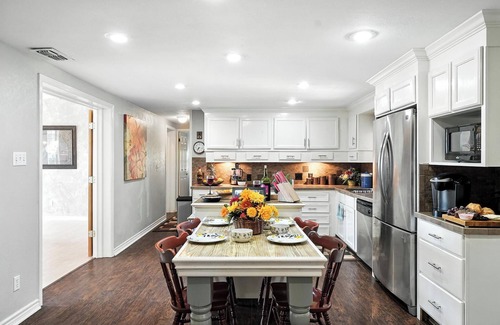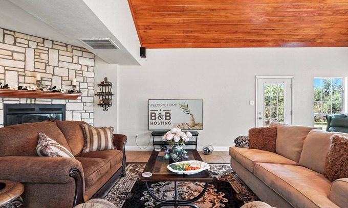 Escape to Rock Cottage, a beautifully renovated home that perfectly blends rustic charm with modern comfort. Nestled on spacious grounds with mature oak trees, this stunning property offers the ideal setting for family gatherings, romantic retreats, or peaceful getaways in the heart of Texas.
