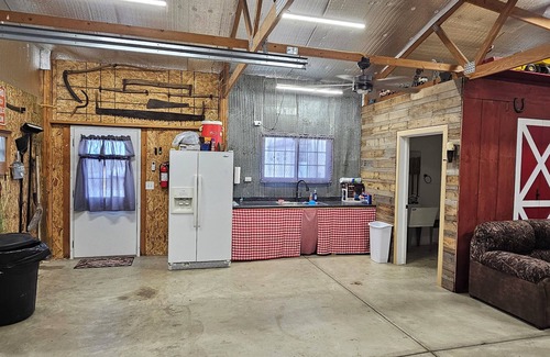 Our lodge is designed to accommodate your needs, featuring a newly climate-controlled outdoor building **The Hangout** included with your rental. This versatile space includes: