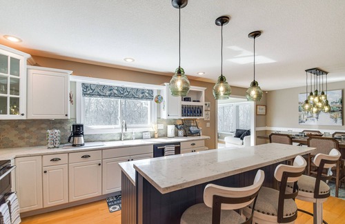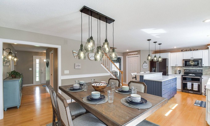 The best of Rock Island, IL, awaits when you book this spacious 3-bedroom, 3.5-bath vacation rental! Boasting 3 levels, multiple living spaces, and a private yard complete with outdoor games, this home provides the perfect base for your next family getaway. Head out and explore Schwiebert Riverfront Park, where you can enjoy the splash zone and live music in the summer months. Return home to enjoy an al fresco meal and an epic sunset on the patio, then end the evening with a group game night!
