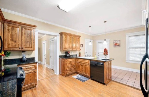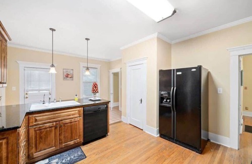 This retreat is perfect for the whole family. Our 1920s home has been updated and modernized but retains its historic charm. Our 4 bedrooms/2 bathrooms home can sleep up to 12 guests! Stocked with essential amenities and Wi-Fi, you have everything you need to feel "at home." Screened-in porch and fenced backyard for kids and pets! It is convenient to the hospital, courthouse, downtown, convention center, and all the best restaurants Huntsville offers!
