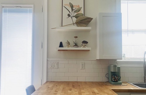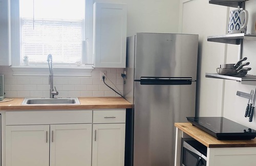 Perfect for Couples!! Come see a Rocket Launch in Sunny Titusville, Florida !! Located in the Historic District. You can feel the launch rumbles from the house!! Studio style but large enough to stretch out. Quiet restful environment with work space - FREE High Speed Internet and cable / plus access to Streaming apps via Roku, on 50" flat screen, spacious kitchen with full size fridge, induction cooktop, LUX Queen bed, private laundry and plenty of storage. The 9 foot ceilings make space feel larger and open! Brand new LUX Vinyl flooring installed 2023 - Brand new Cal King mattress - and 32" TV for bedside viewing - oversized leather recliner love seat -perfect for watching movies together! Rain head shower with nice HOT water and pressure - even for those over 6 ft - So many upgrades - a true Retreat !! Just 13 miles from the beautiful Playalinda National Seashore, 5 miles from the Indian River, with big public boat ramp. Beach Chairs and Umbrella provided. Close to all the attractions, just 48 miles to Disney World, 26 miles to Cocoa Beach, and check out our adorable small town with lots of cafe's and shopping. We offer Private Parking with room for RV or boat (certain models) - Private entrance - detached from Main home. Private fenced back yard with privacy fence. Private Laundry. Walk to best Coffee shop in town @rearviewcoffeeshop for breakfast or lunch, Winn Dixie .25 miles away. Ride the Coast to Coast bike trail - trail is close enough to ride your bike!! Take a stroll in our downtown 5 miles away and enjoy craft beers, good food and local art!! @rocketcityretreat