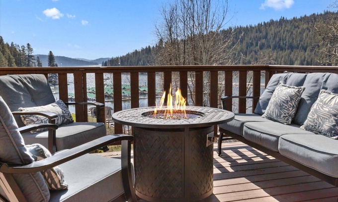 Rockford Bay Bliss – Pet-Friendly Home w/Lake View, Fire Pit, Deck, BBQ, Near Marina & Shooters Bar is located in Coeur d'Alene. Rockford Bay Bliss – Pet-Friendly Home w/Lake View, Fire Pit, Deck, BBQ, Near Marina & Shooters Bar provides accommodation, featuring Security/Safety, Bedding/Linens, Fireplace/Heating, among other amenities. This House features Security/Safety, Bedding/Linens, Fireplace/Heating, to make your stay a comfortable one.
