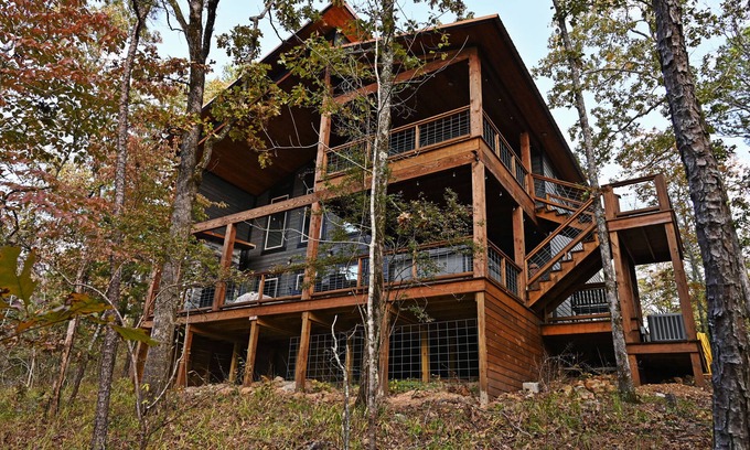 Welcome to Rockin Robin, time to escape to this truly secluded getaway. Rocin Robin is a brand new 2 story delight. Once you enter you are welcomed by a custom kitchen with open floor plan to the grand living area. Soaring ceilings with a cozy gas fireplace. On the first floor you will also find the first of two master suites. Off the bedroom and living room there are two entrances to go outside and enjoy nature on the huge deck featuring another fireplace and the hot tub. As you walk up the breathtaking wooden staircase you enter a large loft which overlooks the living area. On the second floor you will find the second master suite. This bedroom has its own private deck for private enjoyment of the outdoors. Surrounded by nature you will want to return to Rockin Robin. Property located 15 min from the north end of Hochatown.