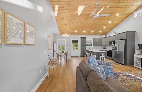 Welcome to Rockshore Escape, where family fun meets lakefront luxury on the stunning Smith Lake in Alabama. This charming cabin is designed with families in mind, offering a perfect blend of comfort, adventure, and relaxation. The cabin comfortably sleeps up to nine guests in its three cozy bedrooms and two bathrooms. The fully equipped kitchen makes meal preparation a breeze, and the inviting living area is perfect for family gatherings. Step onto the large private dock, where kayaks and a paddle board await your aquatic adventures. The expansive porch is an entertainer's dream, featuring a smart TV, plenty of seating, and a water mister(coming soon) to keep you cool on hot days. Fire up one of our grills—Blackstone, gas, or charcoal—for a family barbecue, and as the sun sets, gather around the fire pit for stories and s'mores under the stars. For those who love to relax, the deck offers breathtaking views of the lake, ideal for morning coffee or evening cocktails. After a day of swimming or boating, rinse off in the convenient outdoor shower. The property also includes a hammock and various outdoor games including corn hole, ping pong, and giant jenga, ensuring there's never a dull moment. Smith Lake is one of Alabama's most beautiful and cleanest lakes, with over 500 miles of shoreline to explore. Whether you're into boating, fishing, swimming, or simply soaking up the sun, Rockshore Escape provides the perfect base for your family vacation. Imagine your children laughing as they paddle across the lake, or the whole family enjoying a movie night on the porch. At Rockshore Escape, these moments become cherished memories. Don't miss out on this unique opportunity to experience the best of Smith Lake. Book your stay today and let the fun begin!