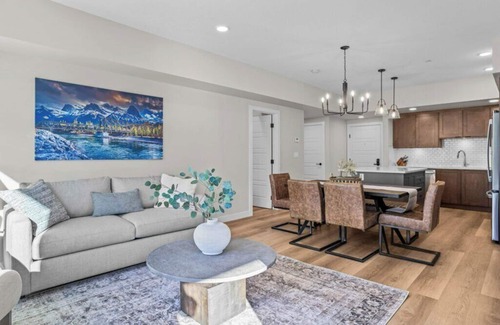 Discover the perfect retreat in Dead Man's Flats, AB, where you can unwind after your adventures. Treat yourself to a rejuvenating hot tub, unwind in front of the cozy fireplace, or simply relax on the balcony and absorb the stunning mountain views. With downtown Canmore just a quick 10-minute drive away, your ideal getaway awaits!
