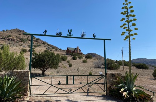 Located in the Davis Mountain foothills in Far West Texas. Enjoy incomparable views from the wrap around deck of this log cabin outside of Alpine and 35 minutes from Marfa on 9 acres. Spend mornings drinking coffee on the deck and evenings star gazing. Plenty of wildlife passes by -- aoudads (exotic wild goats), javelina, jack rabbits, deer, foxes and abundant bird species. Enjoy beautiful sunsets and sunrises. Views in every direction... Night sky is amazing in this dark skies area, Milky Way, constellations, not to mention sunrises and sunsets! 2nd bedroom set up to accommodate older siblings.