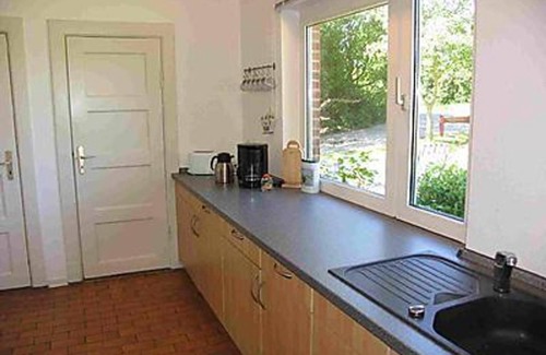 Floor plan: 1 living room, 1 dining room, 1 kitchen, 2 bedrooms, 1 full bath with toilet, 1 carpeted wooden staircase to the OG Living room: sitting area, satellite TV, bookcase and games, floor: carpet kitchen: fitted kitchen, 4 ring stove with Oven, refrigerator with freezer, dishwasher, toaster, coffee machine, kettleFloor: tiles Bathroom: 1 full bath with toilet, floor: tiles Bedrooms: 1 bedroom with 1 double bed upstairs, 1 bedroom with 1 sofa bed upstairs, floor: HolzExtras: cot, highchair , Books and games Garden: about 250 square meters, behind naturbelassender, fenced garden, terrace, garden furniture, deck chairs, barbecue, parking space