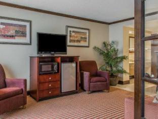 Just blocks away from the Connecticut River, the Rodeway Inn & Suites East Windsor Bradley Airport has suites with seating areas and sofa beds, along with an outdoor seasonal pool and a fitness center. All rooms at Rodeway Inn & Suites East Windsor Bradley Airport feature free cable TV. Each room has a work desk, a microwave and a refrigerator. There’s a business center at Rodeway Inn & Suites East Windsor Bradley Airport, and airport shuttle services are available. The hotel has free Wi-Fi throughout and comfortable fireside seating in the lobby. Breakfast is offered to Clarion Inn & Suites guests. Meals and beverages are available at the hotel’s Runway 91 Bar & Grille. For further entertainment, the lounge has pool tables and video games. Rodeway Inn & Suites East Windsor Bradley Airport in East Windsor is easy to reach from Interstate 91. It is one mile from the Connecticut Trolley Museum. Bradley International Airport is 4 miles away, and the Scantic River State Park is 6 miles from the hotel.