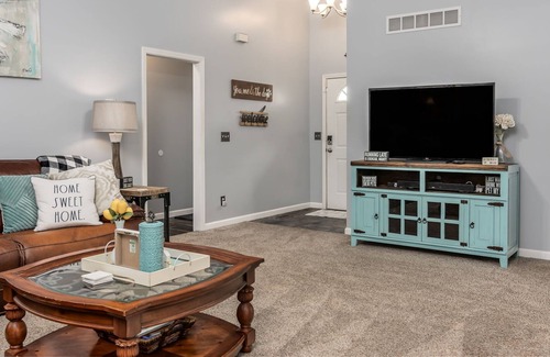 We are the perfect location for all things KCK! Just a 0.5 mile easy walk or drive to Compass Minerals Sporting Fields/Providence Medical Center & 2 miles to Legends Shopping/Kansas Speedway/Childrens Mercy Park/Legends Field. We're located in a quiet neighborhood with mature trees and plenty of room for the whole group. We have 4 bedrooms with cozy beds and two large living spaces with soft couch space for a few. Come enjoy a relaxing stay at Rogers Royale!
