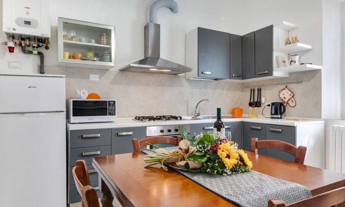 The accommodation with independent entrance is cozy and spacious (81 sqm). It has a brand new private kitchen, with dining area with table and chairs and a comfortable sofa, complete with everything you need: hob, fridge, oven, microwave, dishes and crockery, water boiler and the famous Artusi recipe book. to consult to experience the original Romagna recipes.