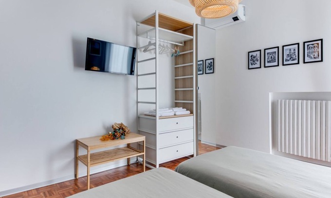 In risalto le ampie e accoglienti camere da letto, modernamente arredate con armadiatura open e letti con nuovissimi materassi che rispettano le esigenze ergonomiche per il riposo ottimale e pregevolmente arricchite da biancheria sempre perfettamente igienizzata, e lenzuola e cuscini extra.