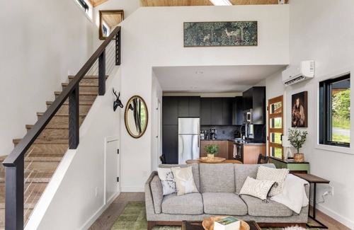Romance meets design at Viking Hut, a Scandinavian 1BR retreat in the North Georgia mountains Floor-to-ceiling windows frame fiery fall leaves, a skylight invites stargazing from your king bed, and a fenced yard makes it perfect for pups is located in Young Harris. Romance meets design at Viking Hut, a Scandinavian 1BR retreat in the North Georgia mountains Floor-to-ceiling windows frame fiery fall leaves, a skylight invites stargazing from your king bed, and a fenced yard makes it perfect for pups provides accommodation, featuring Fireplace/Heating, Laundry, Air Conditioner, among other amenities. This Cabin features Fireplace/Heating, Laundry, Air Conditioner, to make your stay a comfortable one.