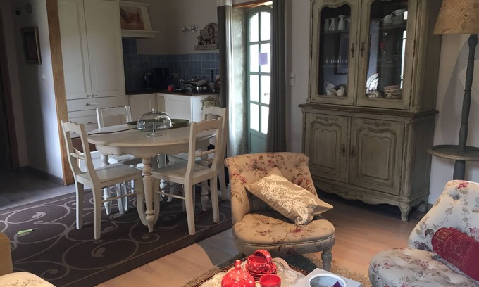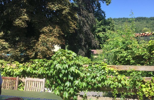 furnished, and has two bedrooms with private bathroom and private terrace, so plenty of privacy. The emphasis of the bedrooms is on comfort, refinement of luxury linen, and then softly dreaming with the cry of the owl sitting in the age-old chestnut tree, could it be even more romantic? In the morning you can quickly go get bread and croissants around the corner, and then have breakfast on the sun-drenched terrace. At 100 meters from the house you are in full nature, between the hills to take a walk, or to go jogging on the voie vert. Next to the garden is a large saltwater swimming pool to share with a few families, in the private garden you have a very comfortable spa. (A surcharge of 100 euros is required for this. The spa is private) Within walking distance of the house there is a beautiful restaurant with an outdoor terrace on the edge of the river.
