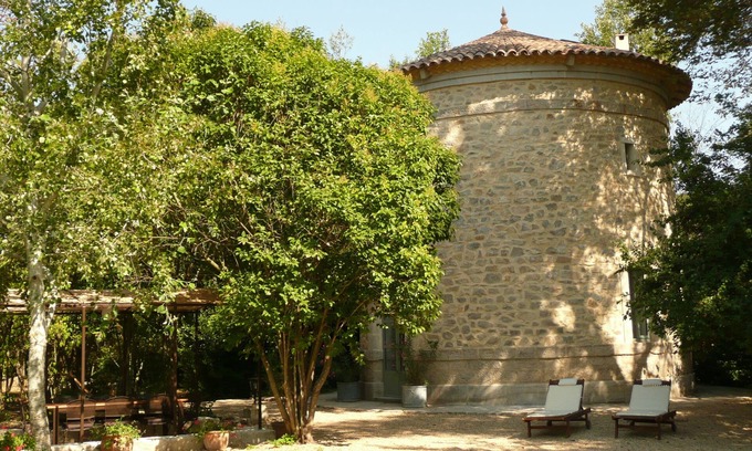 Who has never dreamt of a tower? In quiet secluded private 1 acre wooded grounds, our beautifully restored 19th century Tower provides sun or shade for lazing around or eating under the pergola . After a day at the beach or sightseeing , the cicadas song will enchant you . Indoors, its whitened stone walls give a feeling of being away from it all .The tower has its own private entrance (chemin de la gandole) and ample parking spaces. Secluded and invisible from the main property occupied by the owners (100 m away) it offers privacy as well as easy contact if needed. ''Le Cabanon" a charming well equipped summer annex (30m2 ) with two bedrooms , shower-room and separate toilet adds flexibility. Children love exploring and playing in the one acre grounds , while teenagers can use numerous buses to reach the beach in Le Grau Du Roi or Nîmes In Summer the pool is at the main disposal of guests and very safe for young children . 'Le Cabanon ' offers extra accommodation during the Summer because some families are keen to share their holidays with friends or family. It is best suited for 6 adults and 4 children (in total 10 sleeping places )They are happy to enjoy the country atmosphere yet so close to the beaches . Outside Summer, the tower can be rented on its own on special request . In this case it is well suited for couples or honeymoon holidays or four people with two or no children (six sleeping places maximum).Aimargues is a typical ' Petite Camargue ' village surrounded by open countryside, superb for country walks or bicycle rides . Surrounded by a secular tree - lined promenade, it makes for a very pleasant village walk. In the heart of the village, there are charming old houses in narrow streets. It is well provided with two bakeries,two butchers,two vegetable shops, one chemist,four doctors,three hairdressers , two newspaper and tobacco shops ,two supermarkets,a post - office , two restaurants and typical local cafés etc... Near by are the beautiful towns of Nîmes, Montpellier and Arles. Close by, the unspoilt fauna and flora of the Camargue .In Aigues-Mortes, the intact walled city of Saint Louis, from where he departed for the Crusades, do not miss the grand salt mountains and in the pink waters of the marshes ,the pink flamingos are stunning .Carry on to the beach of 'Espiguette so wild and vast for beaching or superb walks .