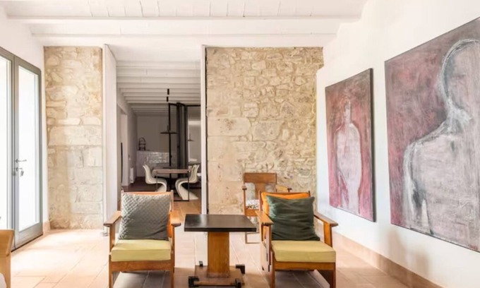 This flat is in the converted wine cellar of the 15th century renovated masia Can Bernadas in the village of Alella, just outside of Barcelona. This flat stays naturally cool in the summer and cozy in the winter.