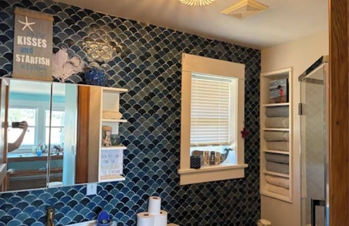 Watch the stars from the covered porch, enclosed sunroom, or bubbling hot, modern hot tub. You'll fall in love with the sounds of the marine birds frolicking in the water directly a stones throw from any location of the home.