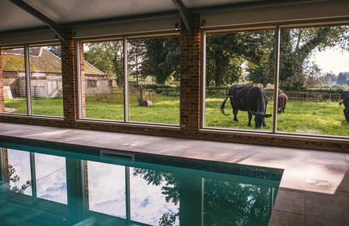 Flint is one of three self-catering properties at Launceston Farm. On site, guests have shared access to the 12m biomass heated indoor swimming pool and sauna and Victorian farm courtyard garden. Each property on site has at least three pre allocated slots in the pool. It is open from 7am-8pm. The award-winning village pub specialising in locally sourced food, beer and cider is a stone's throw from the farm. Walks from the farm gate will take you across the Cranborne Chase Area of Outstanding Natural Beauty across footpaths and bridleways so don't forget walking boots and wellies. If you don't want to go out to eat, the kitchen is well equipped or you can order two-course rustic, farmhouse suppers and farm-sourced breakfasts from Sarah (minimum 48 hours notice).