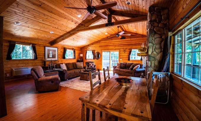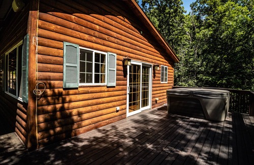 - Secluded Rustic + Modern Log Cabin with hot tub by Stream, luxury getaway