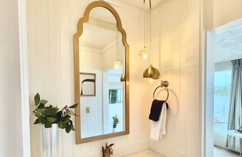 This newly renovated Cabin features 1 private bedroom, a Murphy bed in the spacious living room, full kitchen, and curated accents w/ custom built furniture for a truly one of a kind experience!