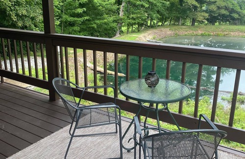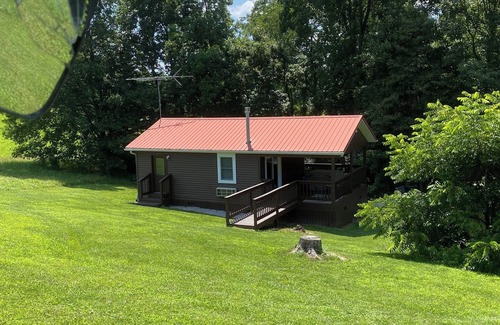 Secluded one bedroom cabin nestled on 100 acre private property with ample hiking and a photographer’s dream. Private pond just feet from porch. Deck offers beautiful sunset views from all directions. Best Nest is located 6 miles from Hocking Hills State Parks and 8 miles from the city of Logan. Covered deck with hot tub and seating. Inside cabin includes living room, dining area, fully equipped kitchen, full bathroom and one bedroom. Fire pit and charcoal grill located just outside cabin.
