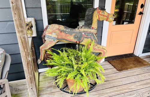 Full kitchen, coffee, 4 gallons of filtered water, cookware, utensils, binoculars, bug spray, kayaks, firewood, outdoor grill, floats, birdseed, and a 1981 AirDyne Schwinn stationary bicycle w/ an amazing view. An extra refrigerator is on the deck just in case you prefer to stock up. A lot of times, when you stay at The Creek House, you will close the gate behind you and not leave until your check out date.