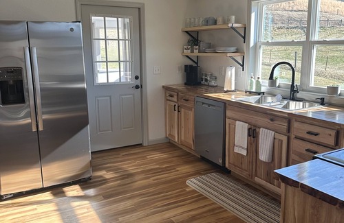 All the rooms in the private cottage have mountain views. The newly completed top-to-bottom renovation includes gas fireplace, luxurious bathroom with dual shower heads & jetted soaking tub. Primary bedroom has a queen bed, dresser and ample closet. The additional room has a futon, dressing table and wardrobe rack. All new appliances in the spacious kitchen and open dining room. We offer free wi-fi, washer & dryer, Roku live television, AC & heat.