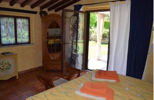 La Casina dell'Orto is the charming dependance of a main villa situated in Alberoro, 7 km far from Monte San Savino in the province of Arezzo. Alberoro is a small village set amidst the fertile Valdichiana valley which is principally known for the cattle-rearing of the Chianina breed. The Chianina is known worldwide for being one of the best Italian beefs and particularly used to prepare delicious “Bistecca alla Fiorentina'.